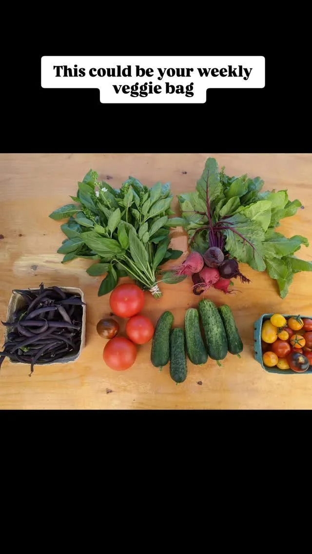 We sell our produce through our Farm Share (weekly vegetable box subscription/CSA) and our year-round self-serve farm store. We also have an annual Seedling Sale each spring where we sell vegetable and herb starts for home gardeners.